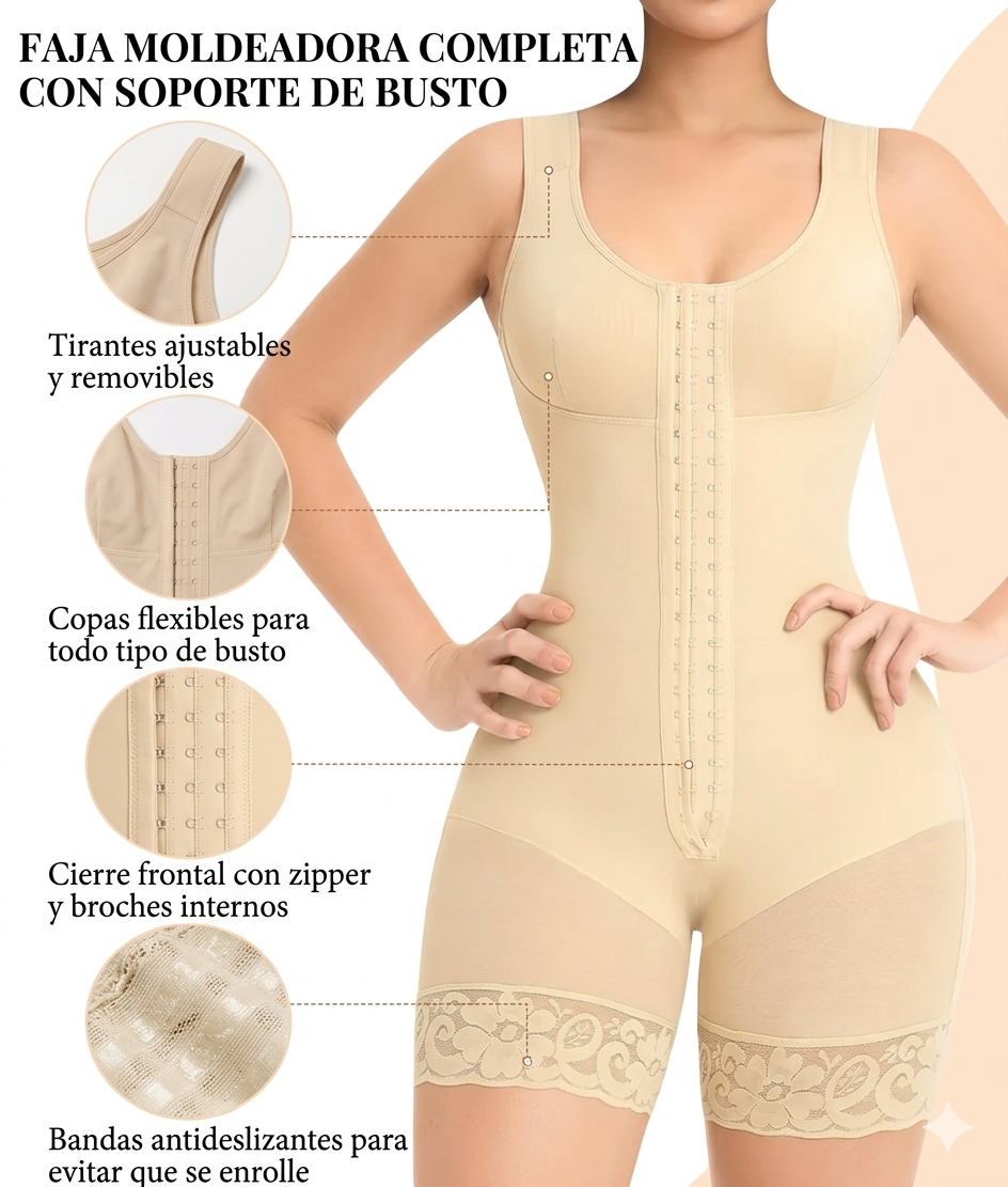 Nuestra prenda combina compresión inteligente y tecnología invisible para esculpir tu figura con total comodidad, permitiéndote lucir curvas naturales sin las restricciones ni marcas de las fajas convencionales.